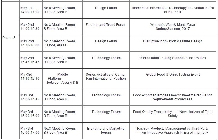 Event Schedule of the 119th Session of Canton Fair