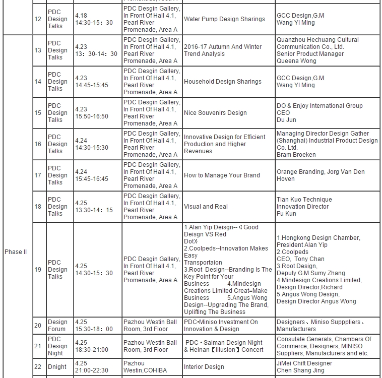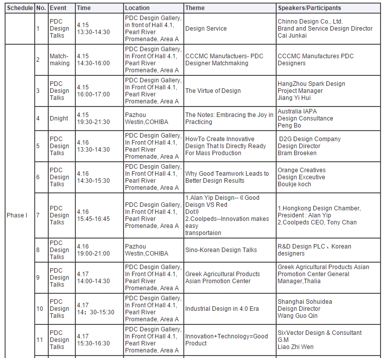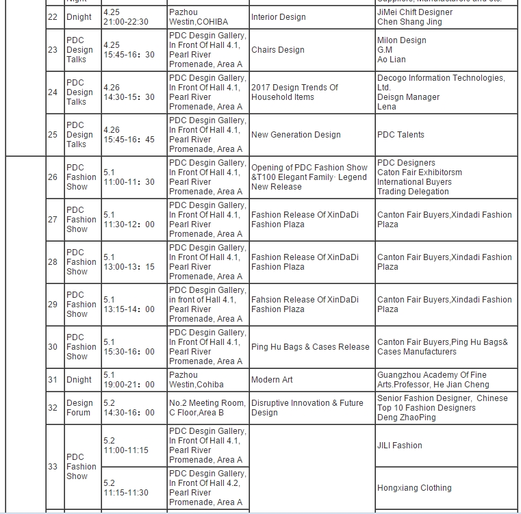 119th Canton Fair PDC Design Events